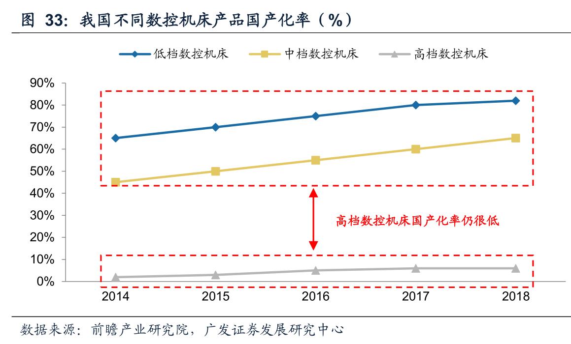 从数据上看,低端数控机床国产化率已高达近90%,中端产品也已经到60%以上,但高端产品的国产化率,目前仍然低于10%。