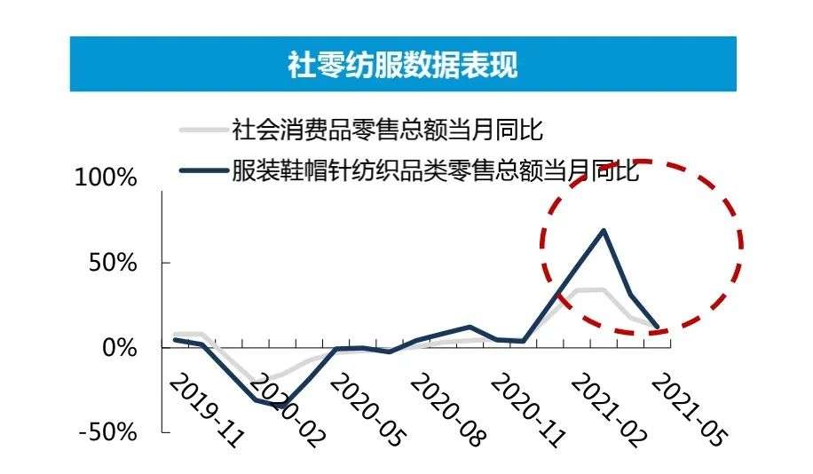 首先是纺织服装业的高景气度持续。疫情后,整个纺织服装行业呈现出高景气度。数据显示:2021年上半年,纺织服装业复苏态势强劲,整体增速高于社零总额增速。而从行情来看,近年来,市场一改“纺织服装业难跑赢大盘”的观点,纺织服装整体关注度与交易量显著上升。