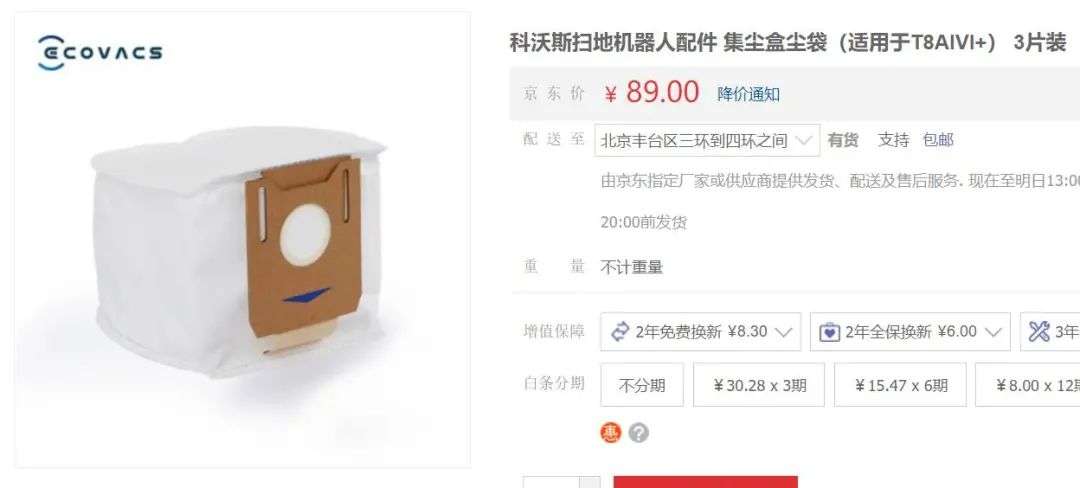 有些配件的价格看起来相对没有那么美丽,集尘袋大概是最具争议的一个了。不同扫地机器人的集尘设计各有区别,因此无法直接套用普通垃圾袋集尘,必须用对应的专用集尘袋。无论是哪个品牌,单个原厂集尘袋的价格都是30元上下,就算是副厂兼容产品最便宜也要5元左右。