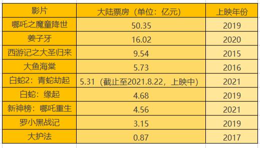 这个问题荒谬吗?从票房成绩上来看,也许并不。我们可以列出一张2015年后比较重要的国产动画电影(非针对儿童市场)票房成绩表: