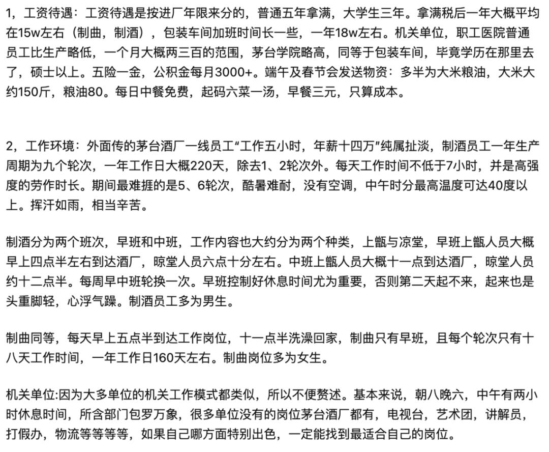 别忘了,这种待遇不是在北上广一线大城市、甚至不是城市,而是在茅台镇。