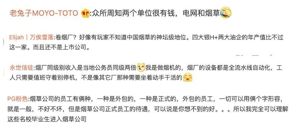 就说卷烟厂吧,听上去应聘的流水线工人,没啥社会地位和影响力。但网友们对这个“神秘组织”夸得实在是撩人,于是我好奇查了一下。