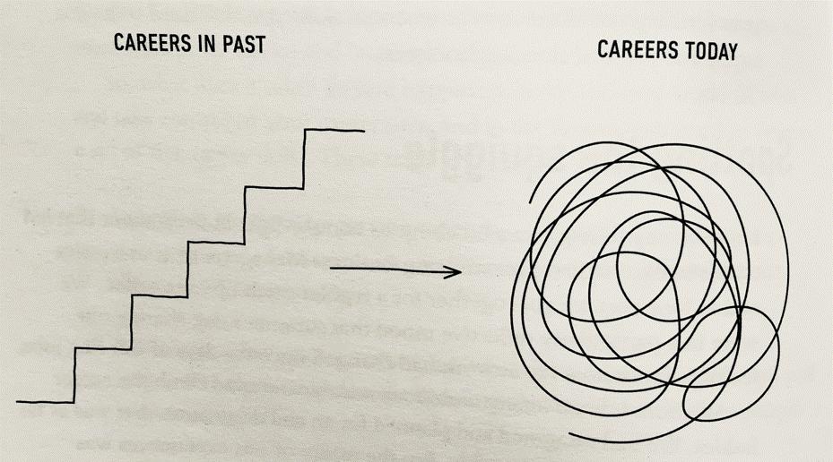 过去一步一台阶上升阶梯式的职业规划现在看来更像一团乱麻。这种“一团乱麻”(Squiggly Career)型的职业轨迹才是未来的主流。