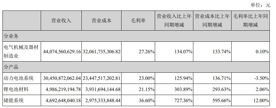 一是动力电池系统。 上半年,受新能源车市场需求拉动,公司动力电池系统销售收入为 304.5亿元,同比增长125.94%。
