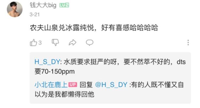 也可能是哥们偷偷穿越去了赛博时代,把自己的舌尖改造成了水质分析器,总之手冲技术不够,那就用农夫山泉冰露来凑——