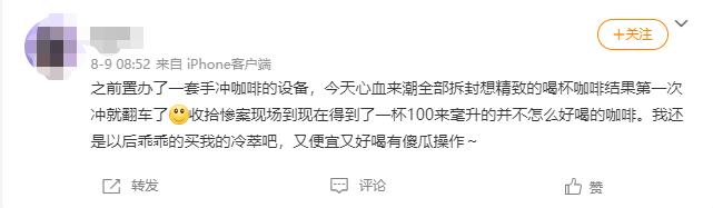 而如今,一些单纯想用手冲装X的人,不会真心投入精力于钻研技术,但却丝毫不减鄙视其他咖啡种类的优越感,完事还会为自己冲翻车、口感不如速溶的咖啡补救一句: