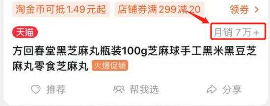 不止东阿阿胶,方回春堂、胡庆余堂、潘高寿等药企也做起了独立包装的黑芝麻丸、雪梨膏等产品。其中,方回春堂的黑芝麻丸在天猫旗舰店的月销已经达到了7万+。
