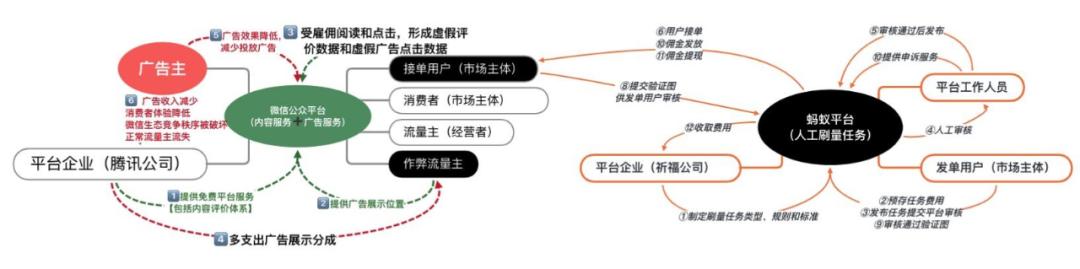 流量是各提供产品或服务的商家竞相争夺的市场资源,流量的基本单元是有实际消费潜力的消费者。 为了快速获取消费者用户,一些应用程序在推广阶段通常会给与参与“邀新”任务的用户以现金奖励,鼓励此类用户利用自身关系链发展新用户。而对广告主而言,广告展示位则通常选取流量较大、且变现能力较强的位置,如流量稳定且能够“因地制宜”进行推广的第三方平台,当然, 广告主需为此支付相当金额的广告费、推广服务费等。在第三方平台为广告主进行推广时,因其本身并不生产内容,故第三方平台通常将广告放置在流量较大内容生产者的内容页面上。为了鼓励平台上的内容生产者创造更多优质内容,第三方平台往往会给与流量主相应的广告分成,以便起到为广告主引流的作用。第三方平台给与流量主分成的评价依据是“阅读数”、“粉丝数”及“转发数”等真实消费者行为数据。基于此,受利益驱使,网络上产生了一批企图通过非常规途径完成邀新任务、达成特定刷量目标的需求群体 。