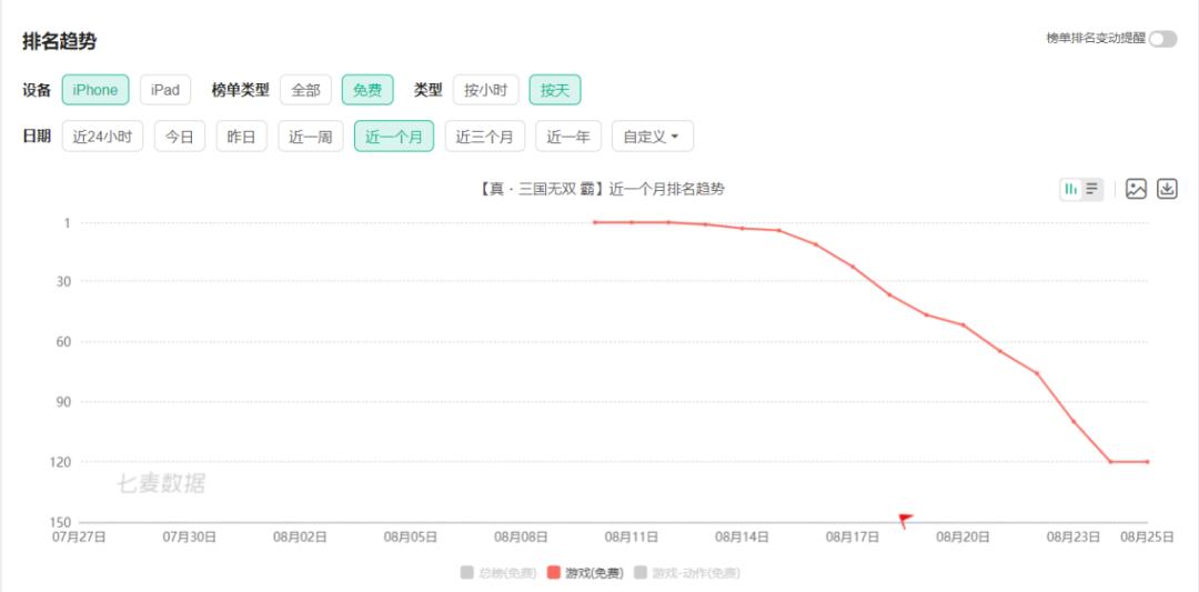 TapTap上这句对手游《真三国无双·霸》的评论,或许代表着相当一部分玩家的心声。《真三国无双·霸》上线之初,连续3天占据App Store免费游戏榜榜首。好景不长,游戏表现很快走出了陡峭的下跌曲线,七麦数据显示,仅半个月后该手游排名已在120名开外。