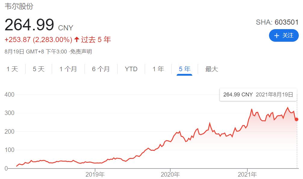 而在2018年韦尔股份收购豪威科技之前,它只是一家专注于功率分立器件和电源IC等产品的公司,但是自从收购豪威科技和思比科之后,CIS有关业务为韦尔股份带来了巨大的收益,实现了四年股价翻10倍的业绩飞跃。