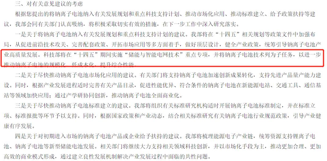 此外,工信部还表示,将做好顶层设计,健全产业政策,统筹引导钠离子电池产业高质量发展。科技部将在“十四五”期间实施“储能与智能电网技术”重点专项,并将钠离子电池技术列为子任务,进一步推动钠离子电池的规模化、低成本化,提升综合性能。
