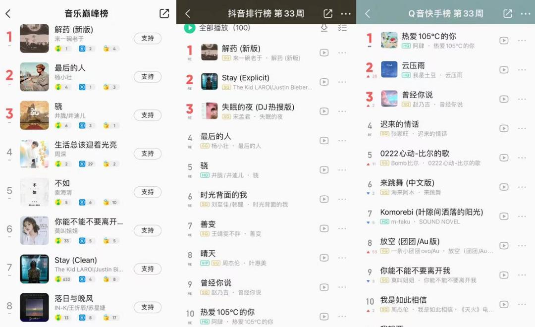 抖音歌曲排行榜也好、酷狗500也罢,如果你不是这类平台的长期用户,打开榜单时会觉得自己进入了一个新世界。TOP歌手的名字令人陌生,那些播放量上百万甚至千万的歌曲听来都是似曾相识。