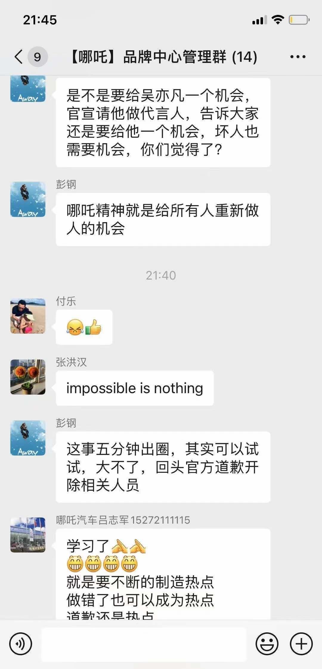 比如:吴亦凡事件爆发后,哪吒汽车的营销,给吴亦凡一个机会,官宣请他做代言人,坏人也需要机会,哪吒精神就是给所有人重新做人的机会。