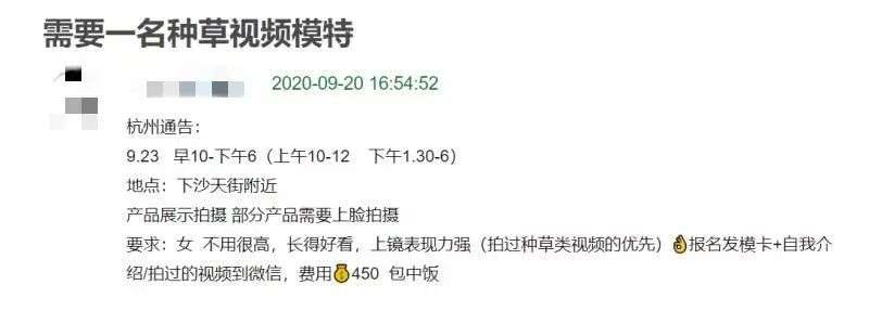从那时候开始,付琳琳有些焦虑:她不愿意出现在审丑的视频里,又不愿意放弃这个收入稳定的兼职。也是那时候,开始有品牌方想绕过中介商直接找素人沟通拍摄,于是付琳琳摇身一变,转做了素人推荐的“包工头”。