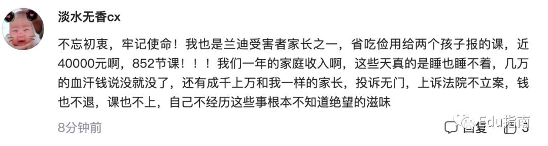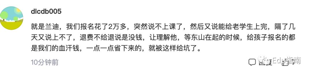 在刑拘后相关新闻评论区,也有多位家长称:曾在蓝迪平台买课,停课后数万元没有退款。