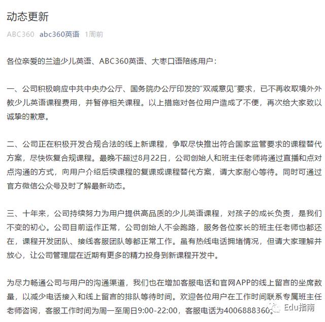 双减新规之下,兰迪少儿英语官微在8月也曾发布动态更新称,境外外教课程将暂停。这意味主营业务收入将直接下降。