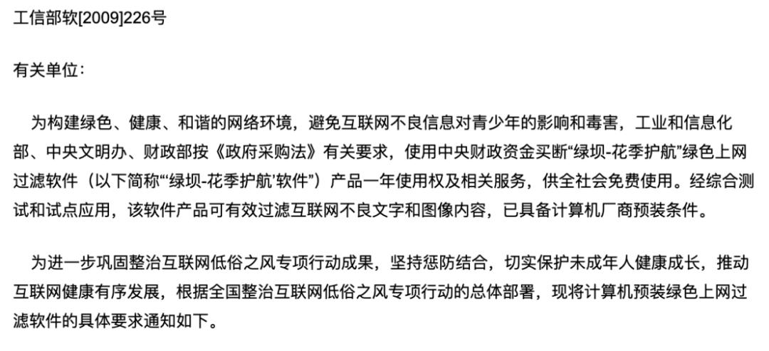 那是《虹猫蓝兔七侠传》被停播的一年后,国家原信息产业部公开征集绿色上网过滤软件,等到2009年,工信部等部门发布文件要求国内计算机出厂时应预先安装“绿坝-花季护航”软件,进口的电脑在销售前也应提前安装再进行售卖。