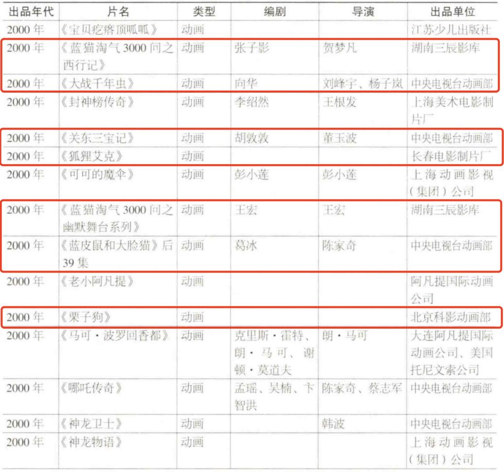 以《蓝猫淘气三千问》诞生的2000年为例,从北京电影学院院长孙立军主编的《中国动画史》可以看出,当年中国大陆一共推出了21部动画作品(包含中外合拍), 其中关键人物设定为动物形象的动画有10部,占了几乎一半,《蓝猫淘气三千问》及衍生剧就有三部。