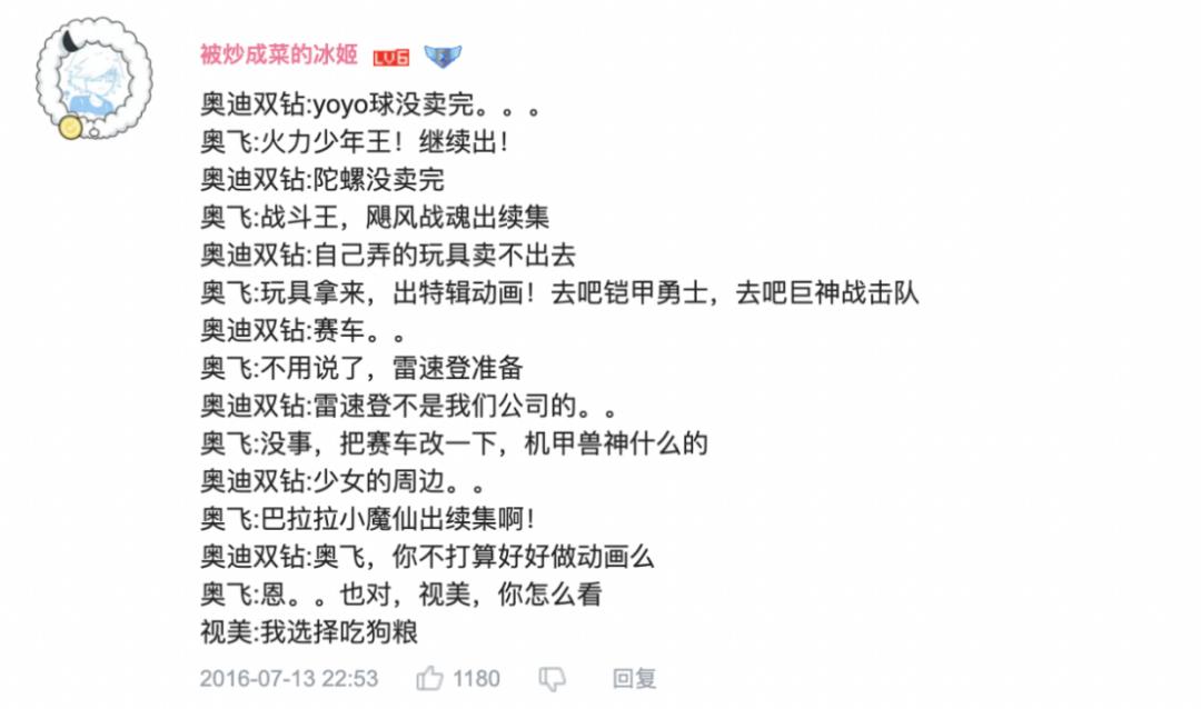 其次,中国动漫产业的发展经历奠定了侧重“低幼向”的基础。上世纪九十年代的动漫制作方,大多是从儿童玩具起家,比如拥有喜羊羊版权,曾经投资过A站的奥飞娱乐,据称其创始人蔡东青就是从玩具小作坊起家,后来生产四驱车、制作子供向的动画、特摄剧基本也都是以更好地卖玩具为前提。