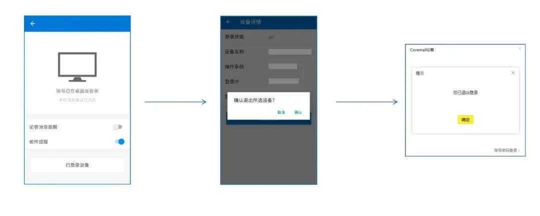 支持在移动端上,查看其他端登录情况,并可控制设备下线。