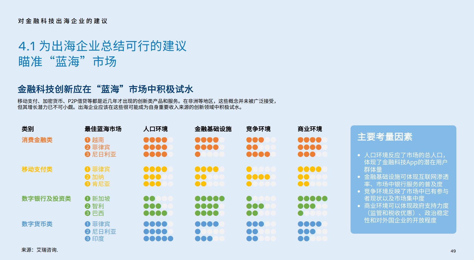 作为中国背景的金融科技出海企业,一方面要迎合海外当地消费者需求、关注当地动态、准确传递营销信息;另一方面要瞄准蓝海市场,综合考量地区人口、基础设施、竞争情况以及商业环境等条件,“三思”而后行。