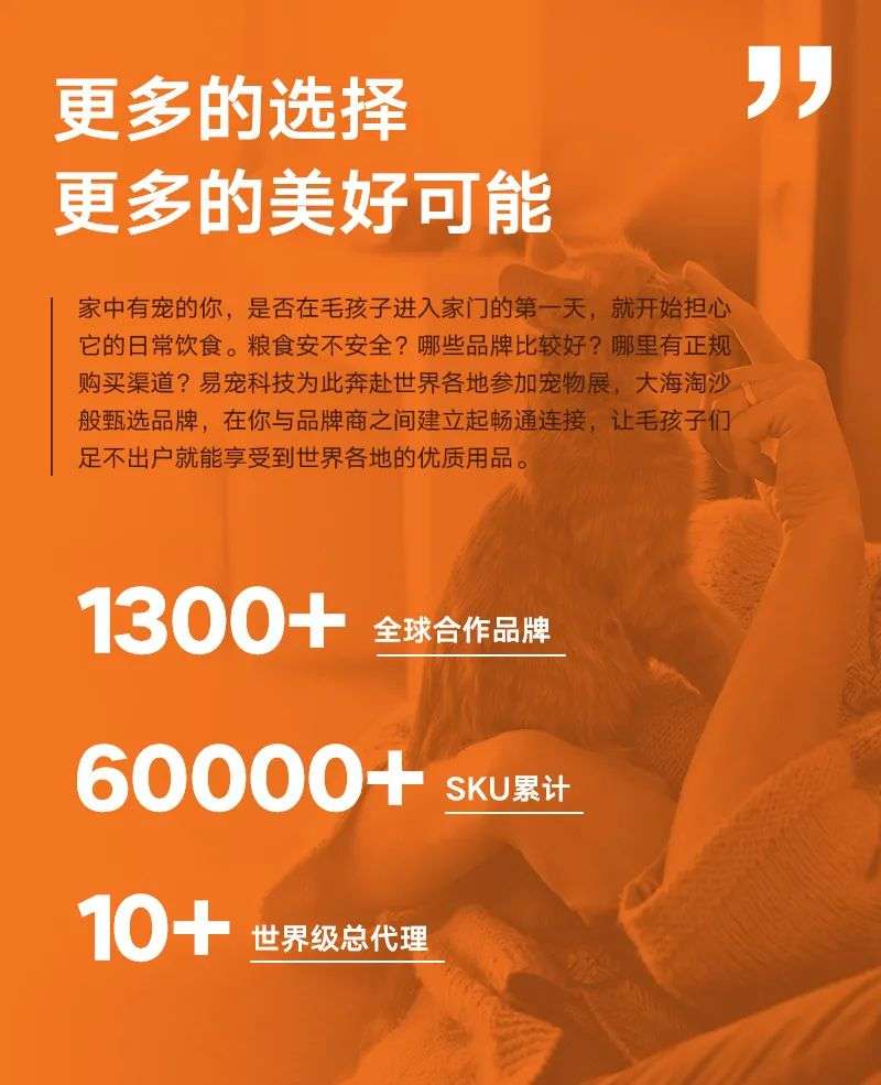 过去的13个春秋里,易宠科技肩负着“为宠物创造无限美好”的使命,深耕着宠物行业。如今,易宠科技为消费者带来了无数高品质的宠物用品,刷新了数十个宠物品牌的市场新面貌,赋能上万家线下宠物店......我们在不断努力,创造更多的美好和价值。