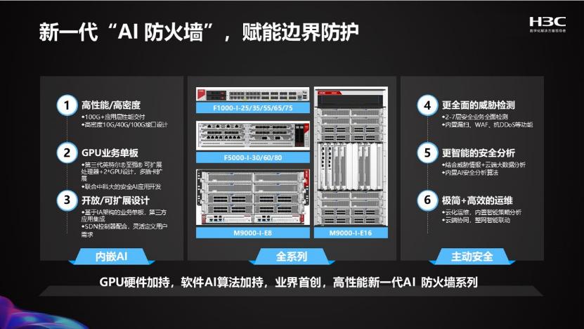 既然防火墙的规则和策略是安全系统的核心,而AI的学习能力则可以帮助系统持续进化,那么AI与防火墙的结合也就显得顺理成章。如今,持续推进“云智原生”战略,强调产品“内生智能,全面云化”的新华三集团,便将“AI防火墙”作为解决这一困境的“利器”,推向市场。
