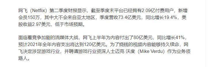 其次,Netflix在自制内容方面投入颇高。根据金融机构预测,网飞上半年为内容付出了80亿美元,同比增长41%,预计2021年全年内容支出将达到120亿美元。高投入也体现到了产出上,经过长年累月的内容积淀,Netflix的“内容资产”已经可以被称为自己的核心优势,其中不乏《爱尔兰人》《女巫》以及新一季的《黑镜》《陌生人》等优秀作品。