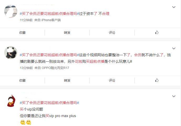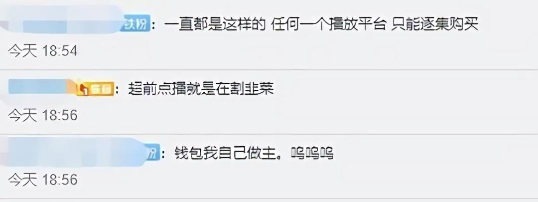 当然,也有部分网友表示,超前点播本身就是个人意愿,并没有强制。“个人意愿吧,想紧跟剧情的就买,可以等的就等。”不过从目前社交媒体的舆论趋势来看,持有这种观点的用户是比较小众的。