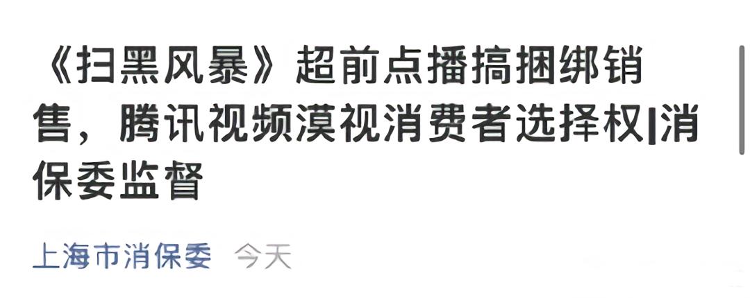 上海市消保委认为,消费者依法享有选择权。腾讯视频在《扫黑风暴》的超前点播中,既然是按集收费的,那消费者就有权选择他要看的那一集。所谓“按顺序解锁观看”,涉嫌捆绑销售,是对消费者选择权的漠视。