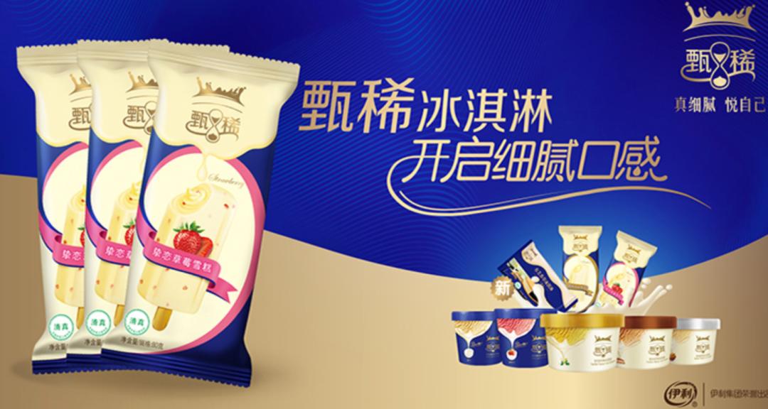 2015年,伊利发布牛奶类冰品“伊利牧场”的高端产品线“甄稀”,依托液态奶事业部的奶源主打100%新鲜珍贵稀奶油。当年甄稀系列共推出5款产品,包括定价7元的香草冰淇淋、奶油核桃冰淇淋、提拉米苏冰淇淋以及定价4元的醇真原味、挚恋草莓棒式冰淇淋。