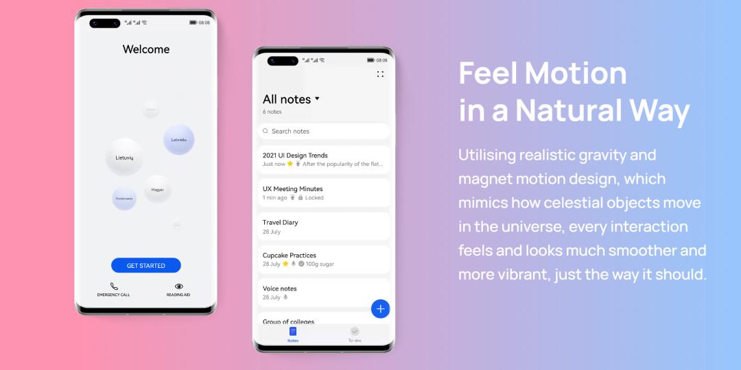 除开界面设计,全新的EMUI 12在设计风格和动效上还有不少和HarmonyOS 2系统相似的地方。举个例子,在HarmonyOS 2系统上大受好评的万有引力动效,也被加入到EMUI 12当中,让用户可以体验到更加立体、更加直观、更加流畅的过渡动画效果。