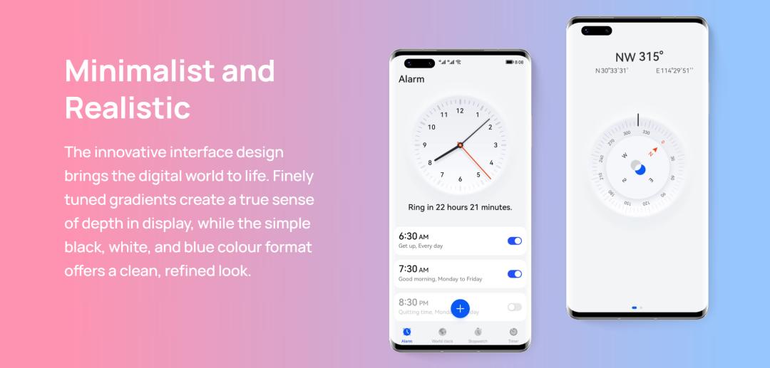 从华为海外官网的介绍来看,EMUI 12还是增加了不少新特性的。首先看看UI设计,和EMUI 11主打多彩艺术不同,这次EMUI 12的界面设计主打极简主义,系统应用全部采用黑、白、蓝为主要颜色打造,整体看上去更加的简洁高效,兼具拟物的真实与极简。