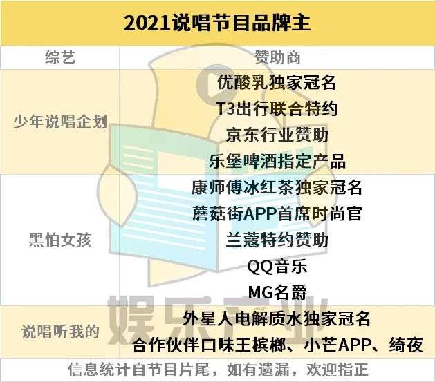 娱sir盘点了今年三档说唱节目的品牌赞助情况。