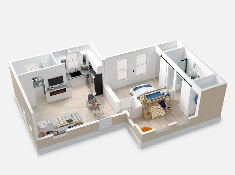 如果房屋要用卡车运输,它的任何部分都不应该超过 8 英尺的宽度。那么问题来了,房屋里的哪一个部分是可以制成、锯开或者折叠等方式,压缩成 8 英尺宽,哪些是不能的?