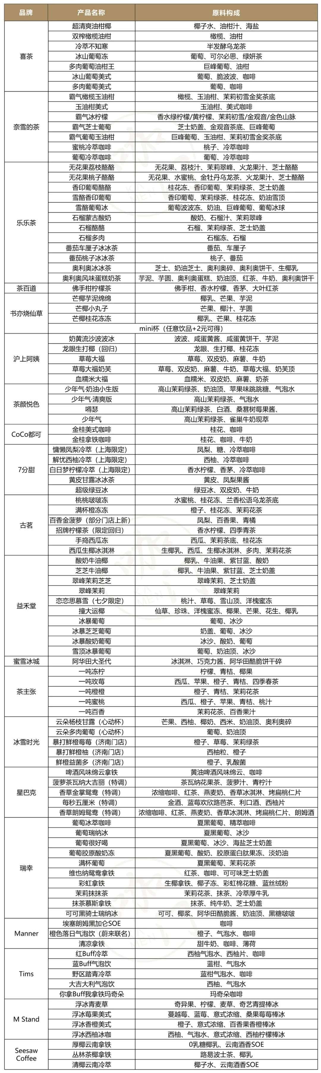 统计20个连锁饮品品牌8月份新品,共101款,具体信息如下: