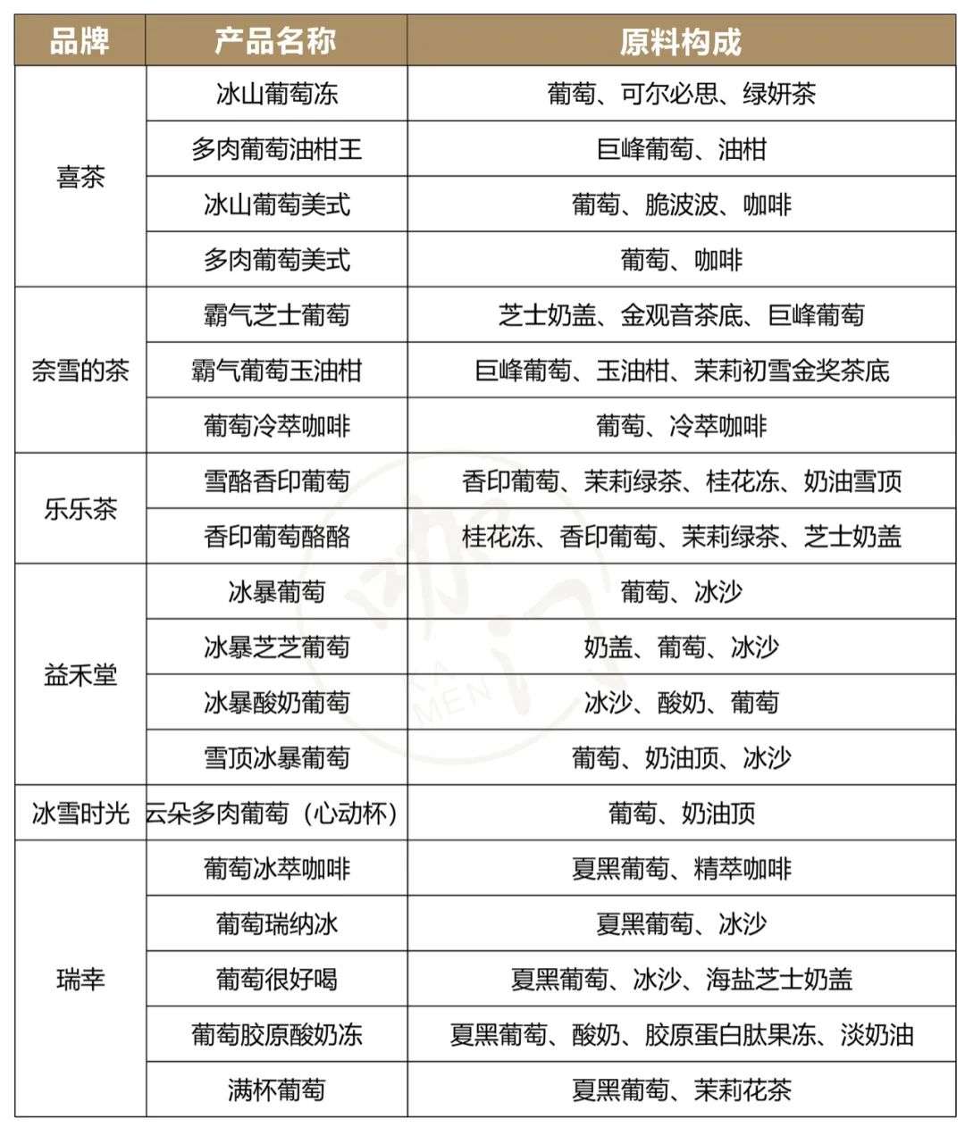 “芝士+冰沙+茶+葡萄”的多肉葡萄产品,已然是茶饮店的经典。