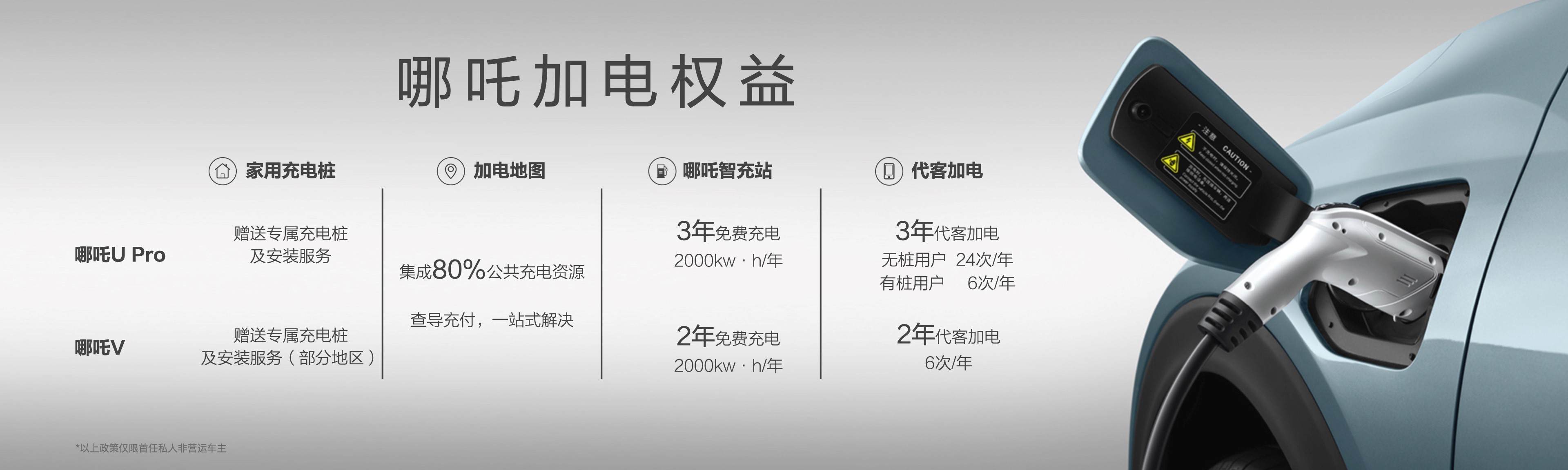 同时,哪吒汽车还为哪吒U Pro、哪吒V车主提供了四大终身免费用车服务——终身免费三电质保、终身免费道路救援、终身免费车联网流量、终身免费FOTA升级,为哪吒车主提供全方位的用车保障。