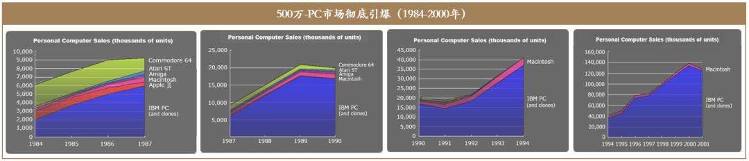 这一时期还有一个最典型的案例,在80年代初期有一台电脑叫C64,它是那个时代最便宜的电脑,但是它只能干一件事就是打游戏,只满足这一个需求即可,因此它在那个时代一年出货量就能到200-300万台了。