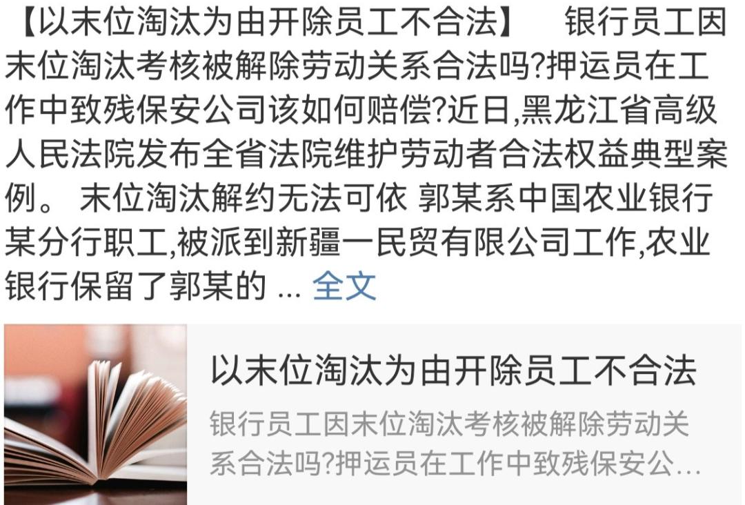 网上曾有个新闻:郭某系某银行职工,后被银行末位淘汰、下岗分流,停发其工资及福利待遇。郭某申请劳动仲裁,裁决结果是银行为郭某安排适当工作并补发工资,银行不服上诉。