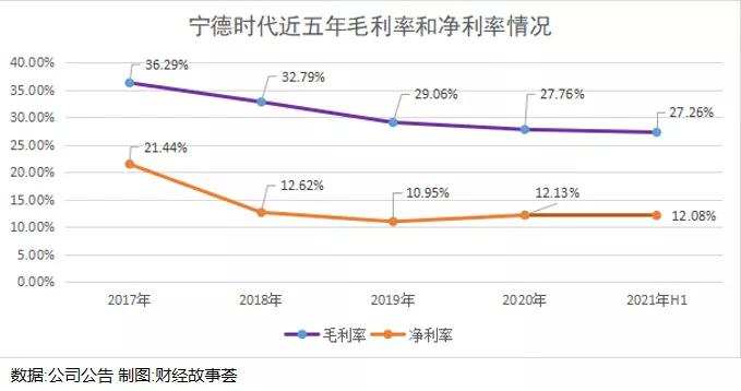 此外,锂电池价格的下降和锂电池原料的上涨,也造成了毛利率不断下降,从2017年的36.29%下降到2021年H1的27.26%。