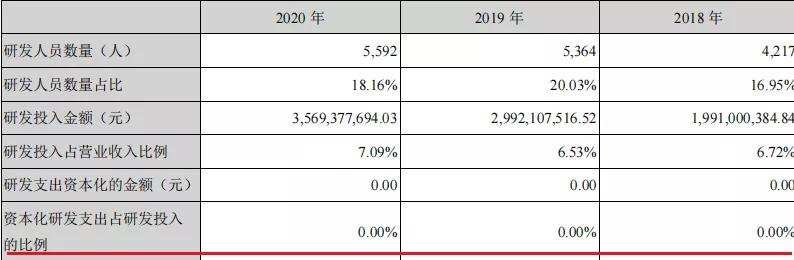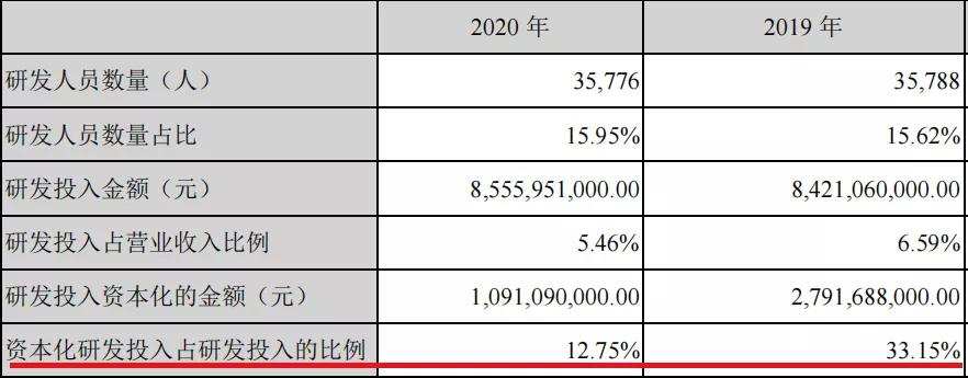 而比亚迪,2020和2019年,研发费用资本化的比例是12.75%和33.15%,在2018和2017年,研发费用资本化的比例是41.55%和40.32%。