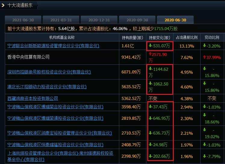 如果我们回看一下2020年的股东减持名单,就能对上面言论的真伪有个辨别。从2020年2季度,十大流通股东就开始了成百上千万股的减持。