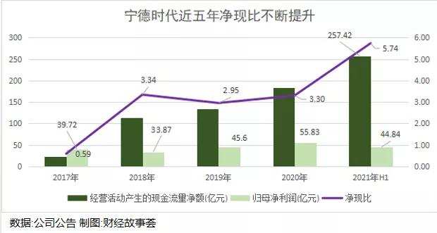 在半年报中,经营活动产生的现金流净额同比大涨341.81%,达到257.42亿元,创出历史最高值,约是净利润的 5.74倍,公司解释这是由于公司收到预收货款增加所致。