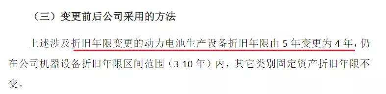 为什么折旧金额一路上行?这是公司主动选择高折旧比例的结果。公司于 2019 年 4 月发布会计政策和会计估计变更公告,对折旧年限变更的动力电池生产设备折旧年限由 5 年变更为 4 年,仍在公司机器设备折旧年限区间范围(3-10 年)内,其它类别固定资产折旧年限不变的处理。