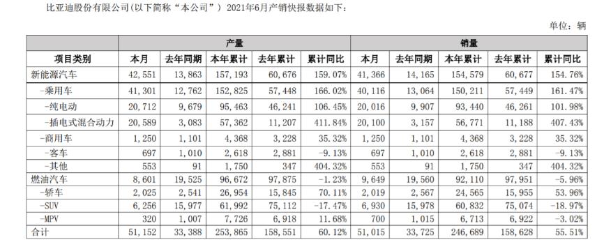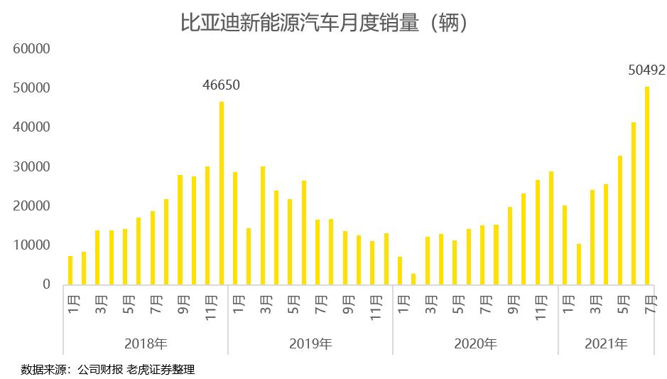 辉煌的成绩并没有止步半年报,根据8月初发布的7月份产销快报,比亚迪7月新能源汽车销量超过5万辆大关,创出新的记录。
