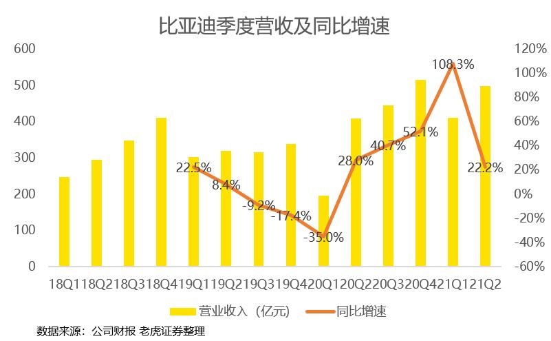 比亚迪上半年营收909亿,同比增长50%。初看成绩还算亮眼,但细看二季度营收499亿,同比增长只有22.2%。