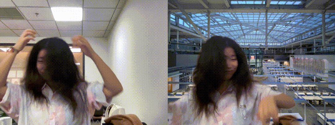 相比之下,现在在线会议软件里的抠图,一旦头发遮住脸,人就会消失……