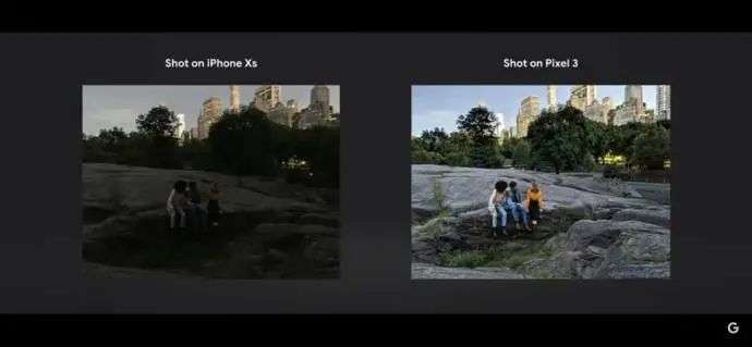 Pixel 3 发布会上的对比,不看 iPhone 的图片,还以为当时是白天.