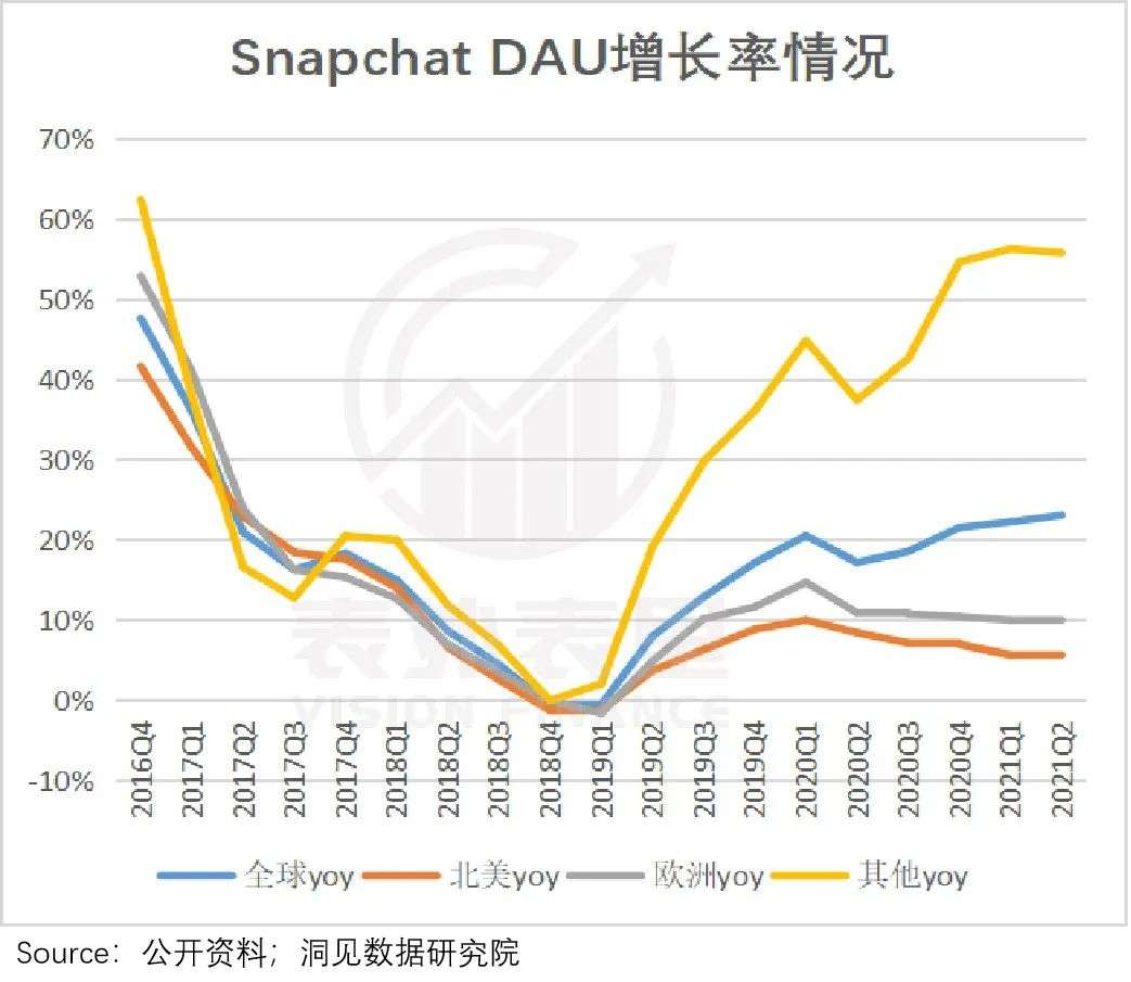 也就是,北美以及欧洲的Z世代们基本都是Snap用户,在这些地区的扩张无法再突破天然天花板。